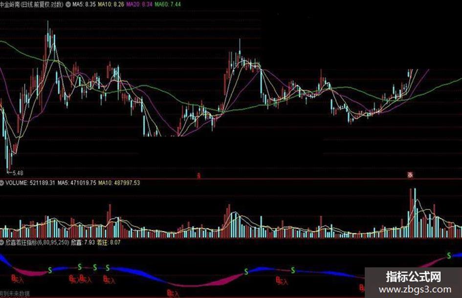 DRAWTEXT(LONGCROSS(欣喜,若狂,1),欣喜*0.9165,'买入'),COLORRED;