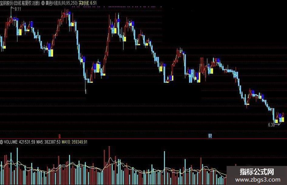 实时线:MA(CLOSE,1),COLORYELLOW;