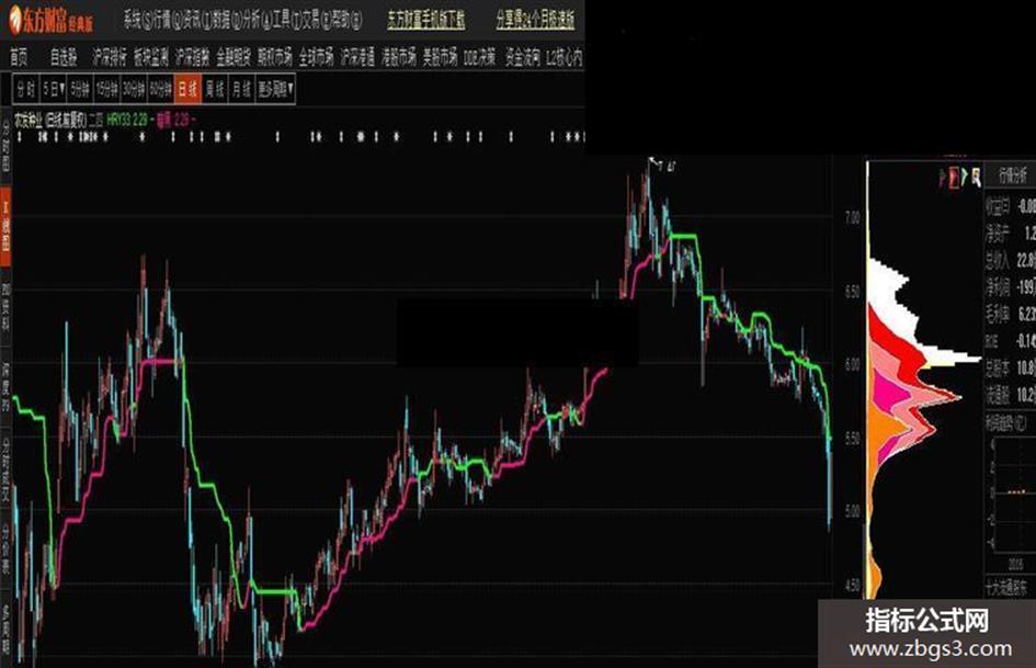 输出暗黑:如果收盘价>HRY33ANDHRY33>=1日前的HRY33,返回HRY33,否则返回无效数,线宽为3,画黑色