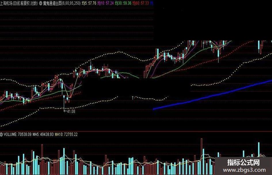 魔鬼通道上:均30 + 2*STD(CLOSE,60) COLORYELLOW,pointdot linethick3 ;