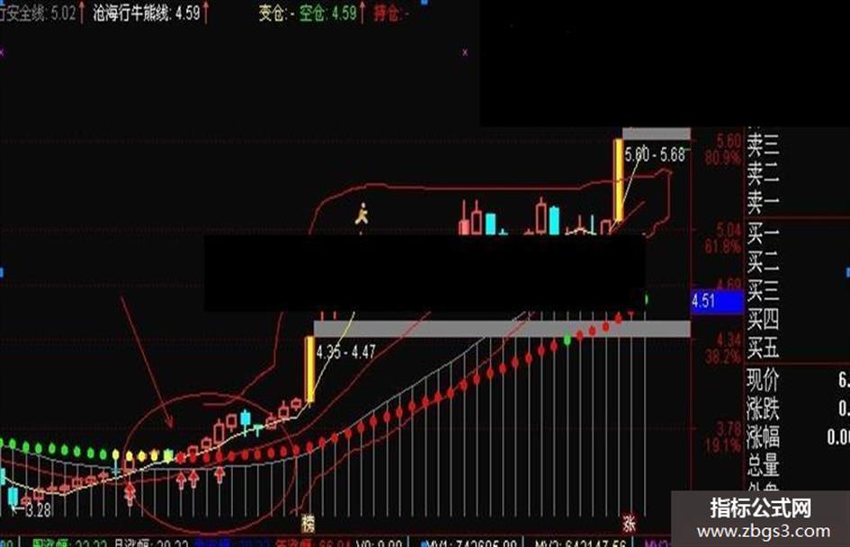4.牛熊线是波段趋势的中轴线,往下走(由高向低连续绿颜色)空仓,往上走红色持仓。注意高点和低点的变化。