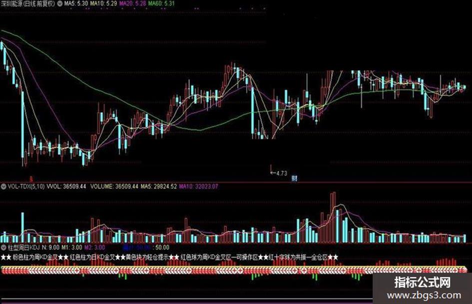 DRAWTEXT_FIX(1,0.0,0.0,0,'★★ 粉色柱为周KD金叉★★ 红色柱为日KD金叉★★黄色块为轻仓提示★★ 红色球为周KD金叉区—可操作区★★红十字球为共振—全仓区★★ ') ,COLORFFFFFF;