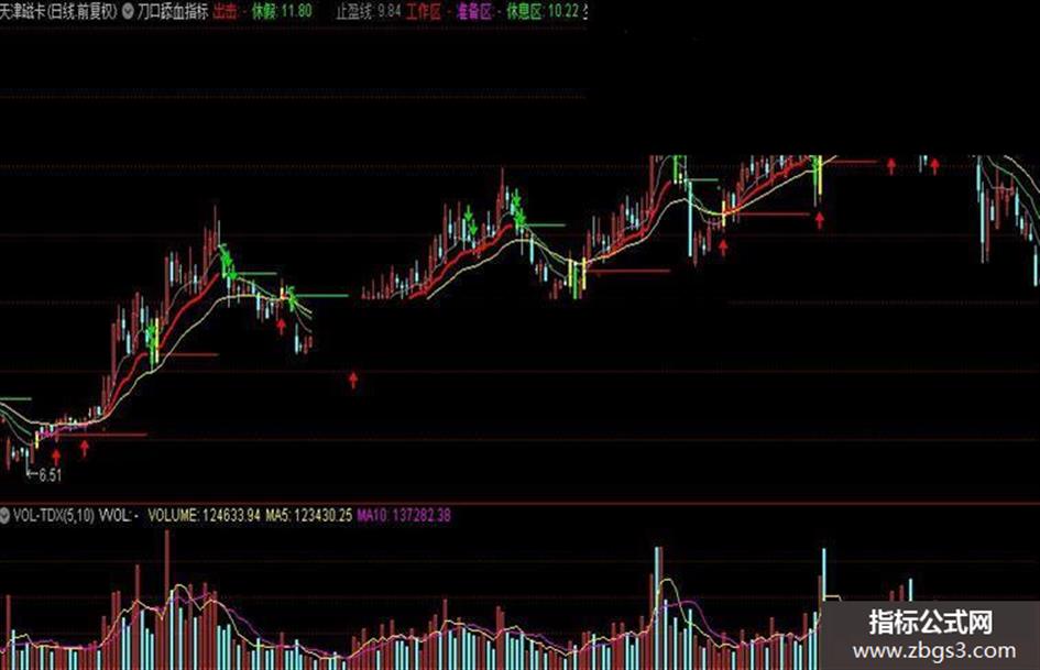 准备区:IF(C>=工作线 AND EMA(C,14)<EMA(C,25),工作线,DRAWNULL), COLORMAGENTA;