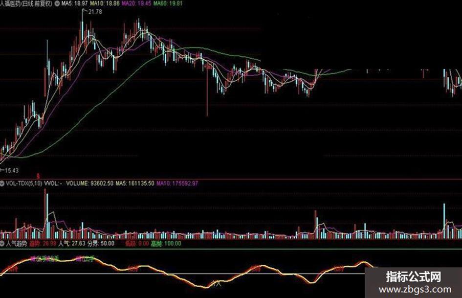 人气: EMA(0.667*REF(趋势,1)+0.333*趋势,2),LINETHICK2,COLORYELLOW;
