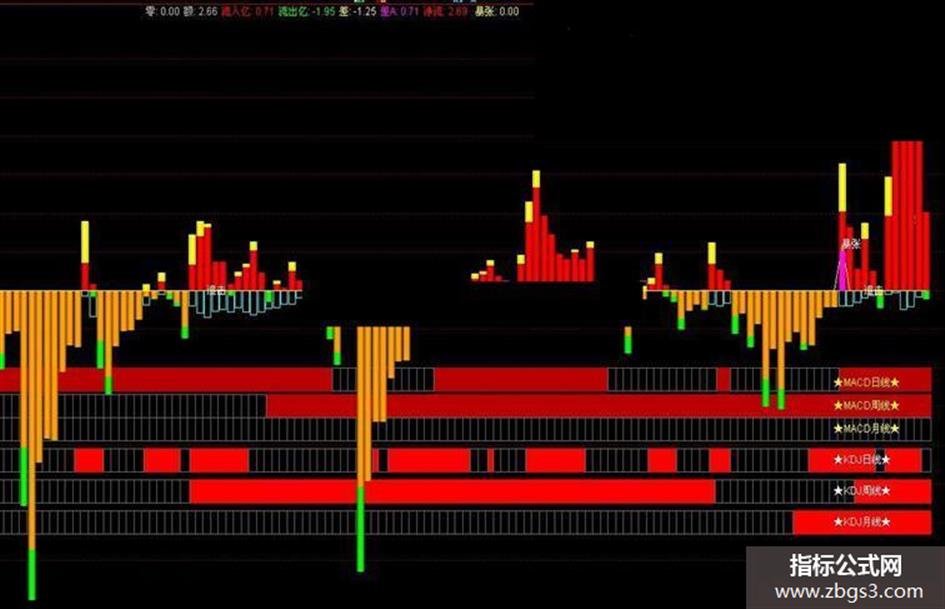 流出亿:IF(CLOSE>OPEN,0-VAR1*((HIGH-CLOSE)+(OPEN- LOW)),IF(CLOSE<OPEN,0-VAR1*(HIGH-LOW),0-AMOUNT/2))/100000000,COLOR00FF00,NODRAW;