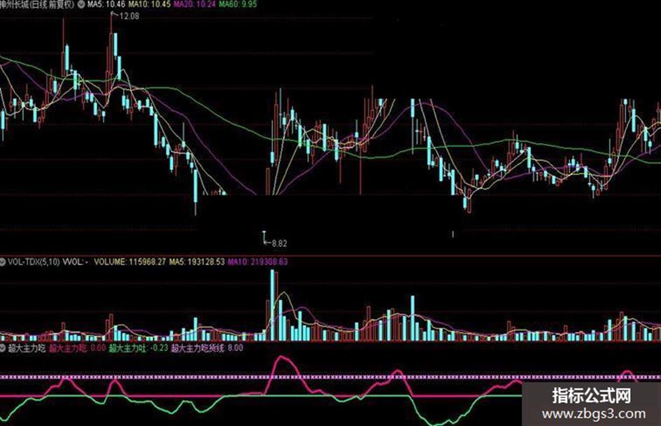 超大主力吐: IF(V4<=0,V4,0),COLOR66FF00,LINETHICK2;