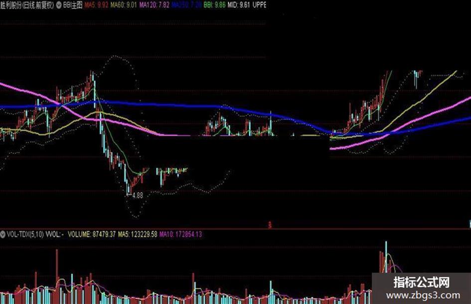 BBI:(MA(CLOSE,3)+MA(CLOSE,6)+MA(CLOSE,12)+MA(CLOSE,24))/4,COLOR00FF00;