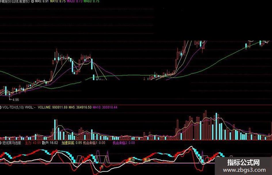 黑马线:=EMA(A11,5); A21:=(黑马线-REF(黑马线,1))/REF(黑马线,1)*100; A31:=EMA(C,5);