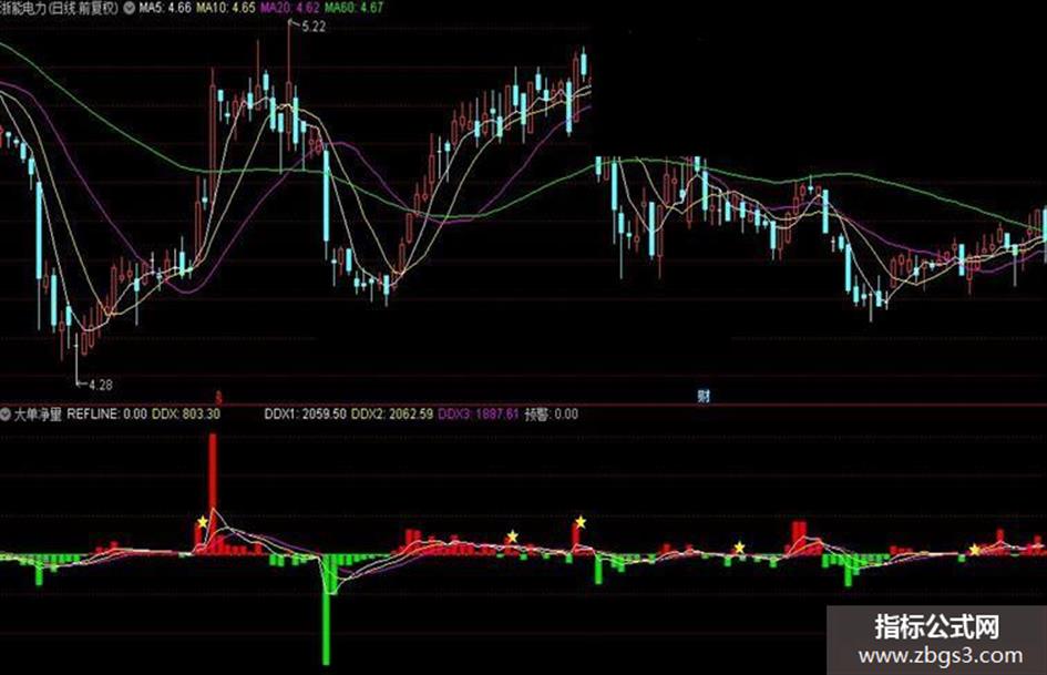 预警:DDX>0 AND MA(V,5)>MA(MA(V,5),5) AND CROSS(DDX1,DDX2),LINETHICK;