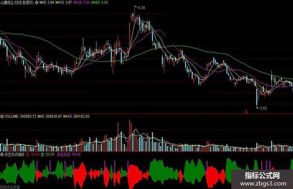 多空买点:IF(CROSS(多,空)AND B>G,90,50),COLORMAGENTA,NODRAW;