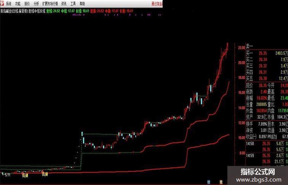 长涨:IF(长线>=REF(长线,1),长线,DRAWNULL),LINETHICK2,COLORRED;