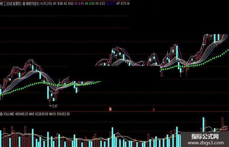 安全线: EMA(CLOSE,55), CIRCLEDOT;