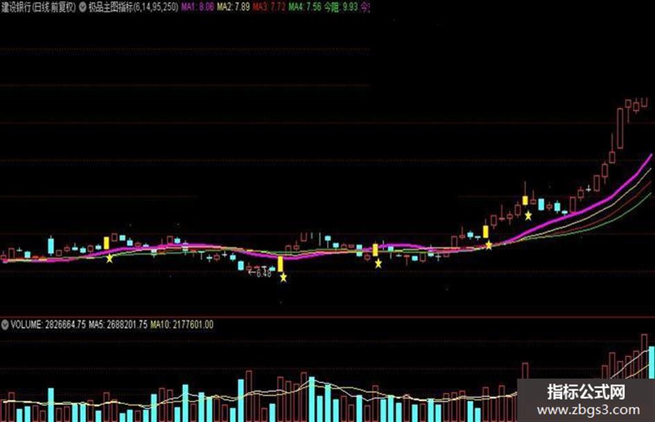 STICKLINE(ISLASTBAR AND C>=今支,今支*1.0001,今支*0.9999,15,0),COLORFF00FF;