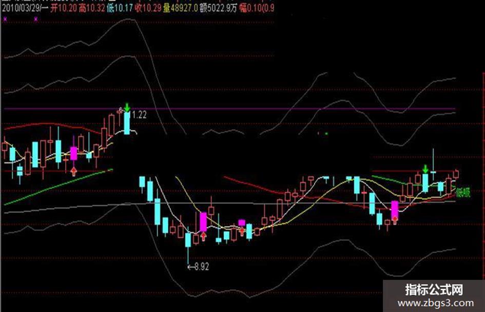 公式开头定义了多个参数(动态止损度、黑、离L、提示、布林M、MMA),用户可通过调整这些参数(通常为0或1)来开关对应的K线染色、文字提示等功能。例如,将“提示”设为1,才会显示“针”、“离!”、“低吸”等文字信号。