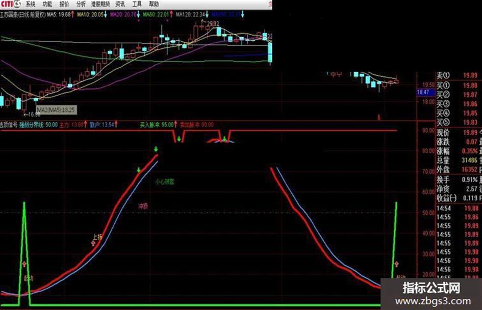 卖出脉冲:IF(CROSS(散户,主力) AND 散户>75,75,90),LINETHICK4,COLORRED;