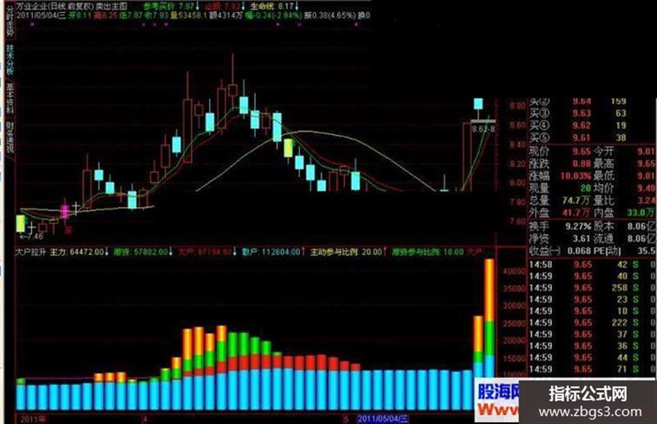 STICKLINE((大户 > 0),0,大户,2.7,0),COLOR102099;
