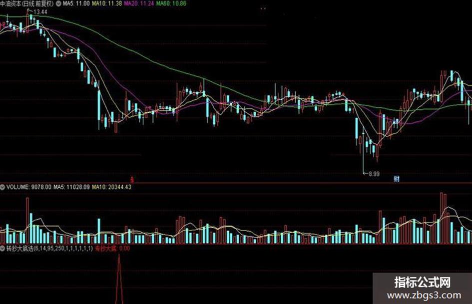 专抄大底: IF(VARA+VARB<7 AND CROSS(VAR8,VAR9) AND VAR9<-18 AND VAR9<VARB,60,0),COLOR0000FF;