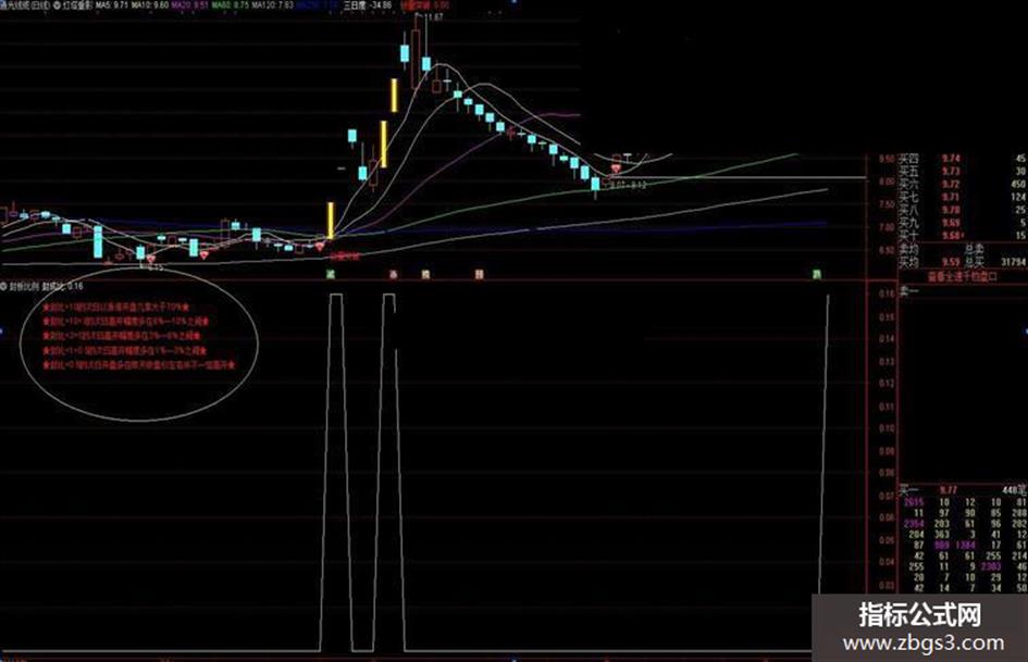 封成比:(DYNAINFO(58)/DYNAINFO(8))*((C/REF(C,1)>1.093 AND C=H));