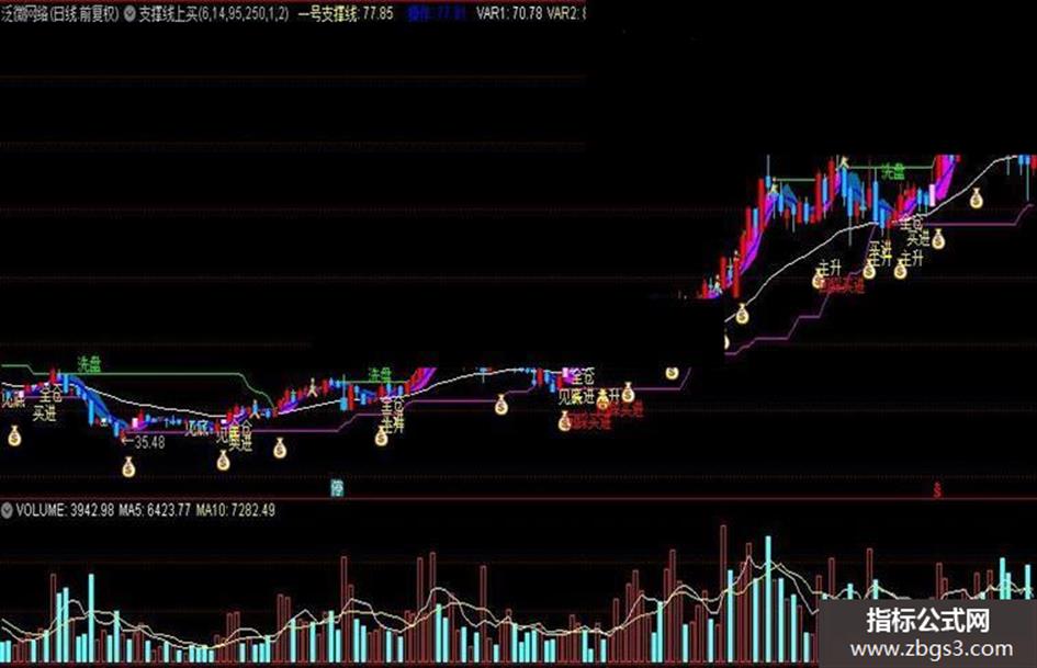 DRAWTEXT( CROSS(上线1,操作) AND M1 AND M2 AND M3,LOW *0.94,'买进' ),COLORYELLOW;