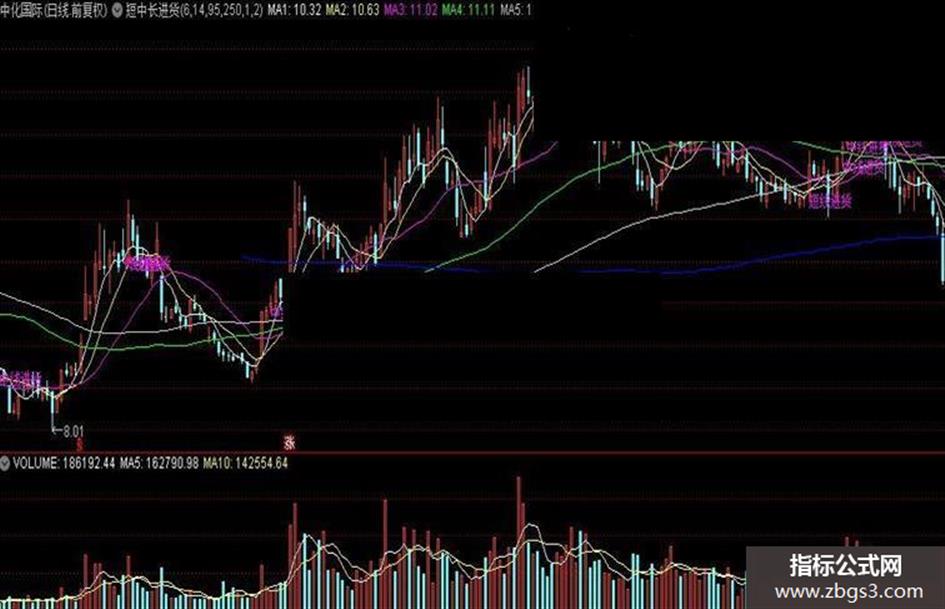 DRAWTEXT(COUNT(MA1>=REF(MA1,1),20)<3 AND MA1>=REF(MA1,1),L,'短线进货'),COLORMAGENTA;