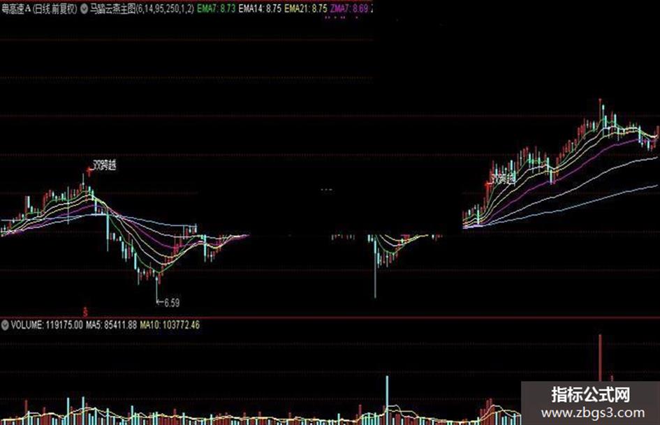 VV0:=BARSLAST(CROSS(ZMA7,ZMA14) AND ZMA7>ZMA14);