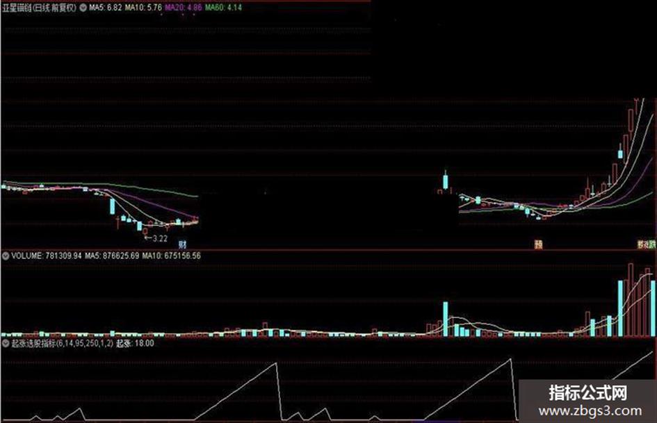 A1:=BARSLAST(CROSS(C,MA(C,20))); A2:=BARSLAST(CROSS(MA(C,20),C)); 起涨:IF(A1<A2,A1+1,0);