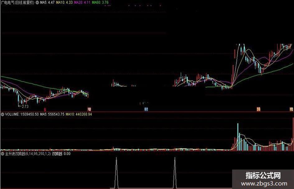 通达信指标:主升浪双跨越选股