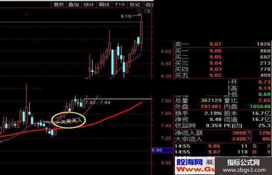AND MA(C,60)>REF(MA(C,60),1) AND FL>MA(C,60) AND FS>MA(C,60) AND FL=FS AND REF(FL,1)>REF(FS,1),FS,'买入'),COLORYELLOW;