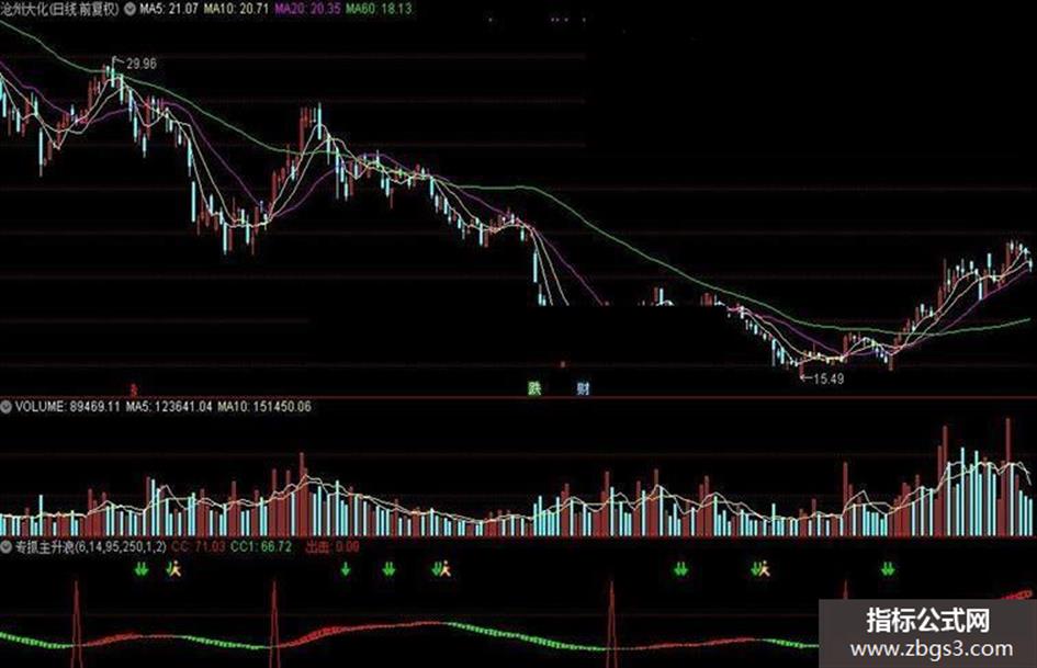 出击:IF((CROSS(CC,CC1) AND (CC1 < 顶) ),80,0),COLORRED;