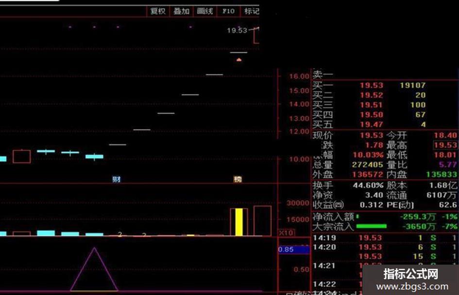 在实战中说技术,大家好像不喜欢,弄个指标,给大家使用。本指标是本人根据实战战法写的,最佳状况是买入后就一字板,一飞冲天。本指标无未来、不漂