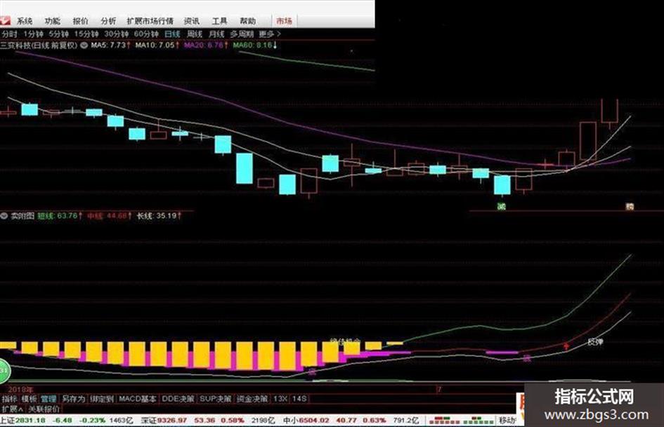 绝佳机会:CROSS(短线,长线)AND 长线<18 AND 长线>REF(长线,1)OR CROSS(长线,5),COLORYELLOW;