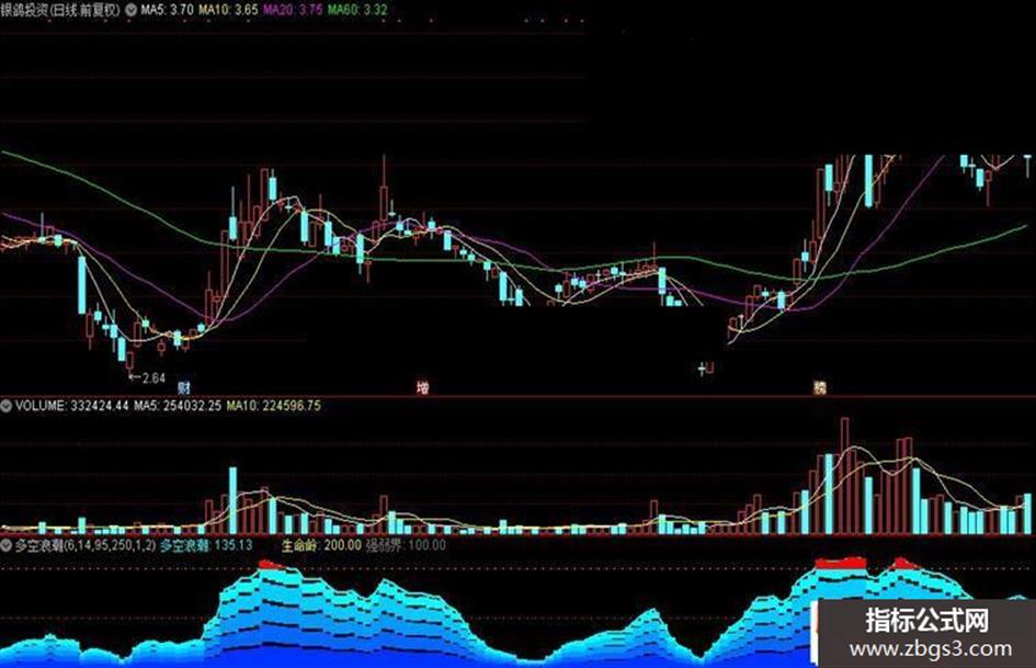 STICKLINE(多空浪潮>200,多空浪潮,200,5,0),COLORRED;