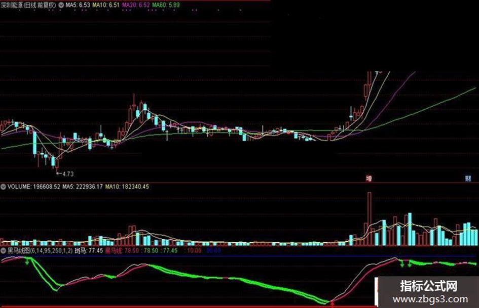IF(黑马线<REF(黑马线,1),黑马线,DRAWNULL),COLORGREEN,LINETHICK3;