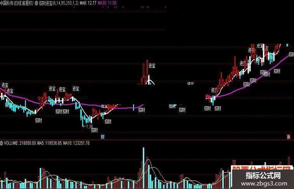 SEL:=CROSS(卖线,买线);DRAWTEXT(BUY1,LOW*0.95,'招财'),COLORWHITE,LINETHICK5;