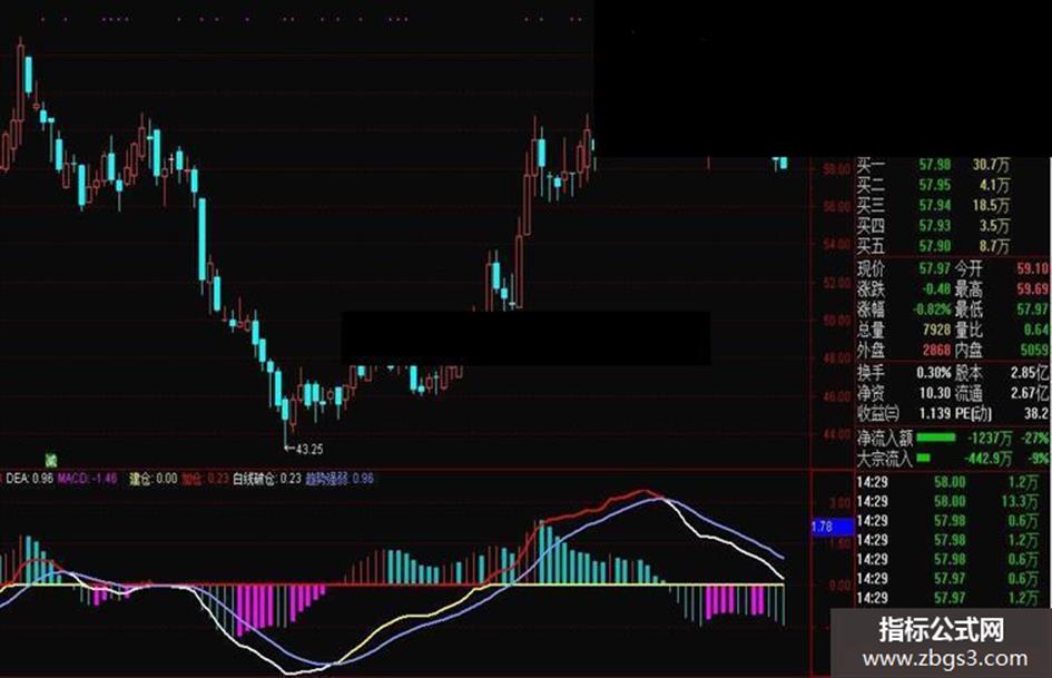 白线破仓:IF(DIF<DEA,DIF,DEA),COLORWHITE,LINETHICK2;