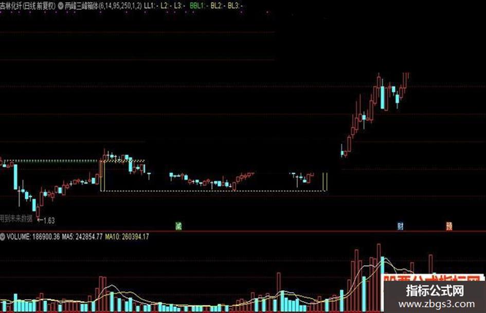 A1:=REFX(HHV(H,N1),N1-1);{N1为峰的宽度}{N2为箱体宽度}