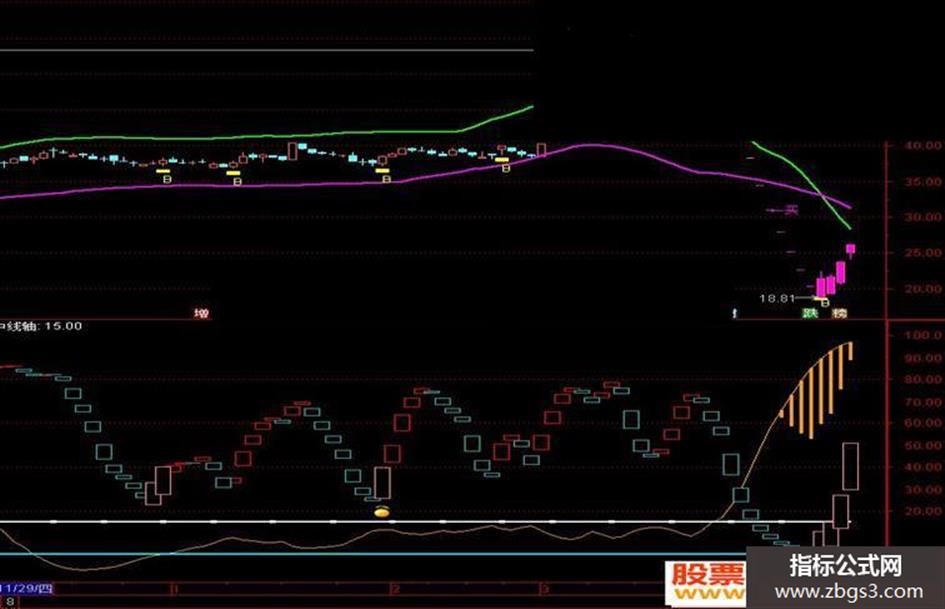XXX:STICKLINE(VVAR4>MA1 AND REF(VVAR4,1)<30,VVAR4+5,MA1-4,6,1),COLORLIRED;