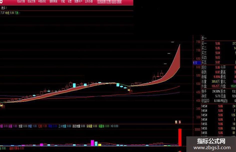 CC:=CROSS(C,MA600) AND VOL>MA(VOL,5) AND (C-REF(C,1))/REF(C,1)*100>3;
