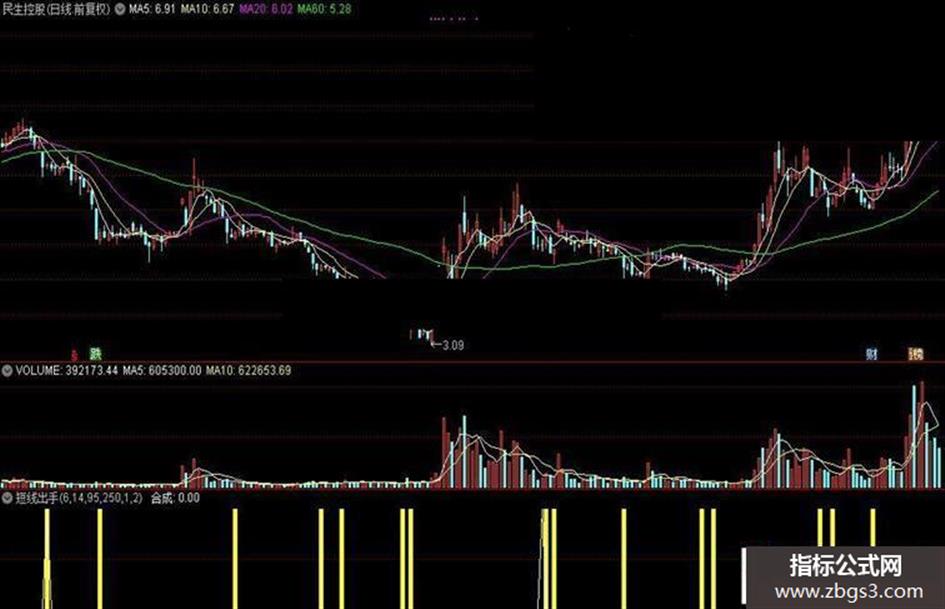 短线买点:=IF(SS>13,MA(SS,2),SS)/6;