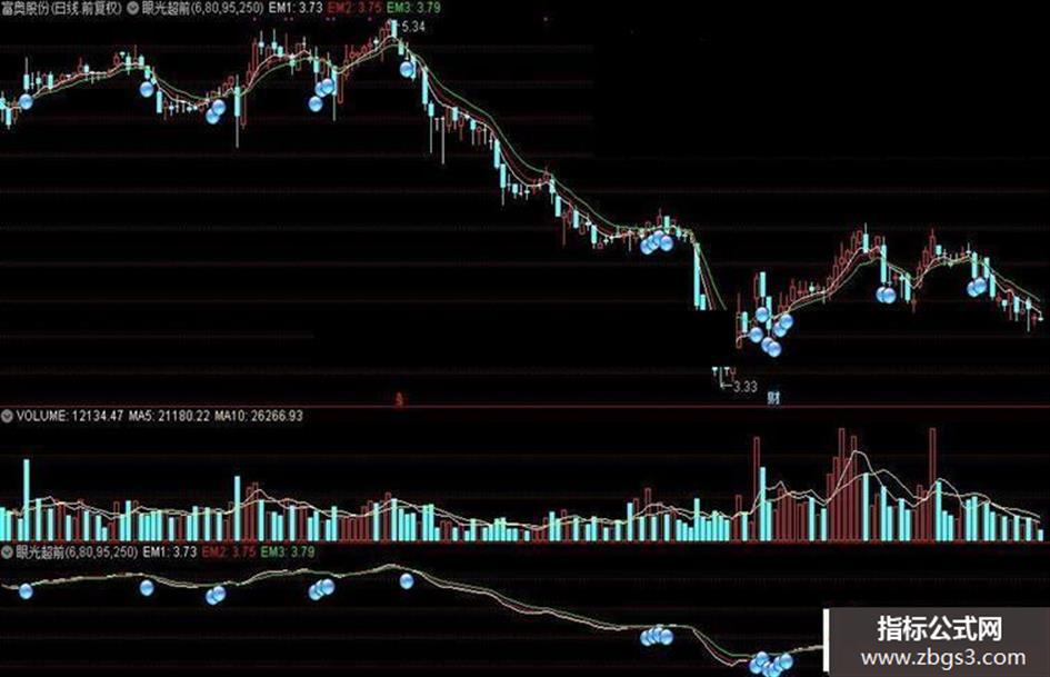 N1:=5;N2:=7;N3:=11; EM1:EMA(C,N1),COLORWHITE; EM2:EMA(C,N2),COLORRED; EM3:EMA(C,N3),COLORGREEN; TJ:=BETWEEN(EM2,EM1,EM3); DRAWICON(TJ=0,L,14);