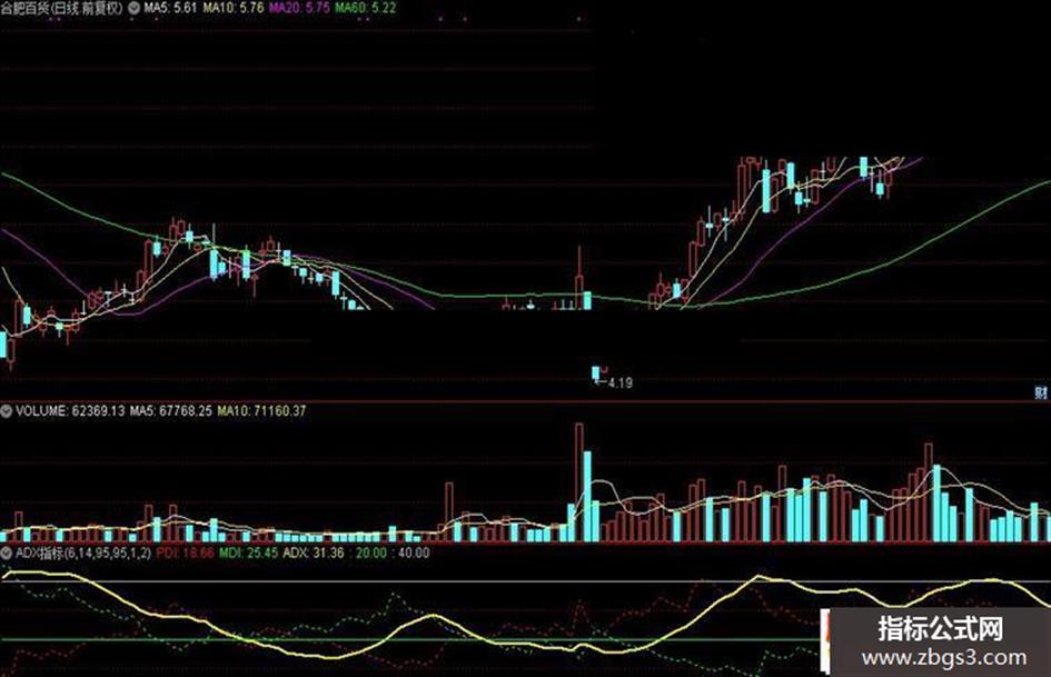 ADX:SMA(ABS(MDI-PDI)/(MDI+PDI)*100,N,1),COLORYELLOW,LINETHICK2;