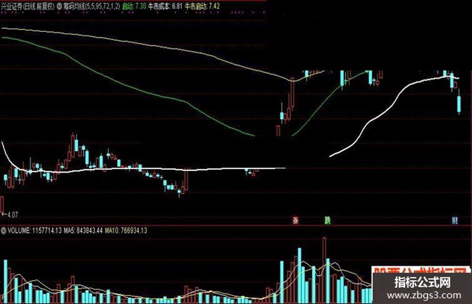 启动:EMA(COST(71),21),COLORGREEN; 牛市成本:EMA(COST(34),3),COLORWHITE,LINETHICK2; 牛市启动:EMA(COST(81),30),COLORYELLOW;