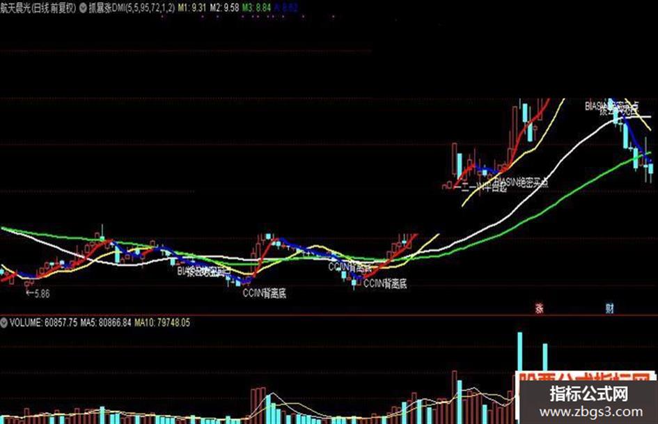 DRAWTEXT(LAST(MA(C,5)<MA(C,10),5,0) AND "CCI.CCI">REF("CCI.CCI",1) AND CROSS("CCI.CCI",-100),L*0.975,'CCI\N背离底');