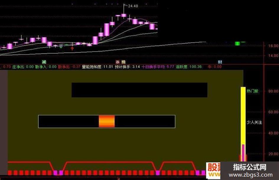 量能饱和度,帮你甄别个股,配合选股公式提高你的成功率,本指标只作为量能参考使用,不做选股使用,有需要的拿走,不喜勿喷,谢谢。