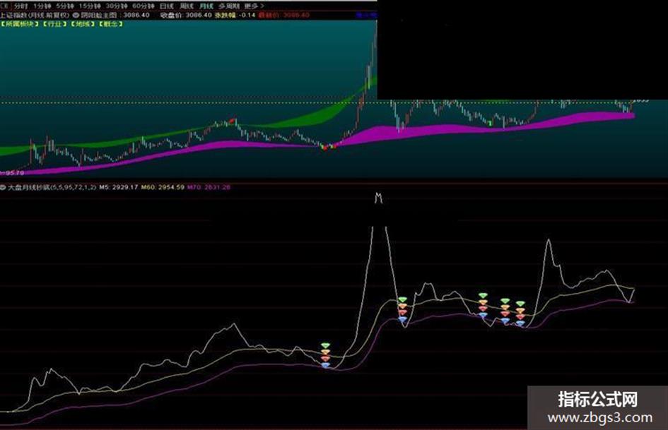 用法是把上证癌股调成月线,然后看此指标, 这是一个长线抓大波段的指标,只适用上证癌股的月线,进场之后得拿住了,最少得拿两三年,能赚几倍得看你选的什么股,