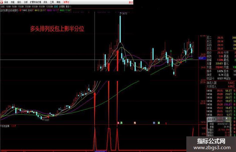 均线多头排列上行途中出现上影洗盘隔天以跳空过前一天上影一半方式出信号,以上影线当天放量,当天信号出来缩量跳空过上影一半,说明主力在上影这天洗盘成功。缩量跳空方式多数可能会涨停。