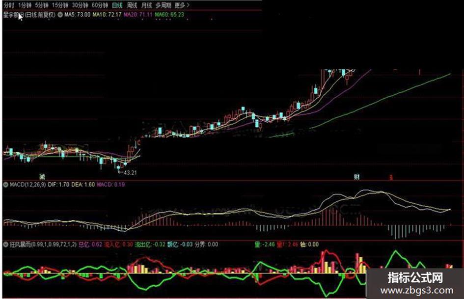 流出亿:IF(CLOSE>OPEN,0-VAR1*((HIGH-CLOSE)+(OPEN- LOW)),IF(CLOSE<OPEN,0-VAR1*(HIGH-LOW),0-AMOUNT/2))/100000000,COLOR00FF00,NODRAW;