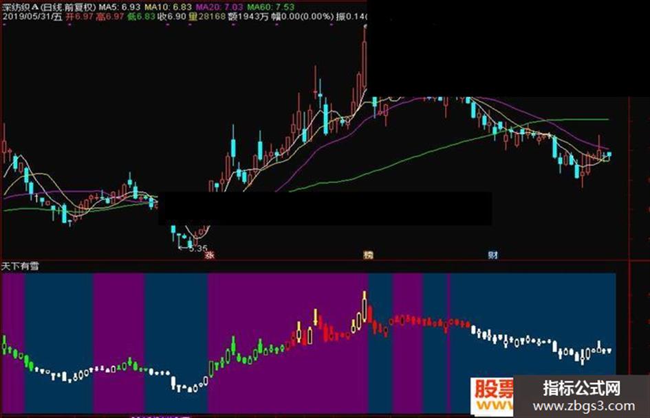 STICKLINE((((((VAR4 > VAR6) AND (VAR4 > VAR3)) AND (大雪 > 无痕)) AND (VAR111 > REF(VAR111,1))) AND (CLOSE < OPEN)),H,L,0.05,0),COLOR0000FF;