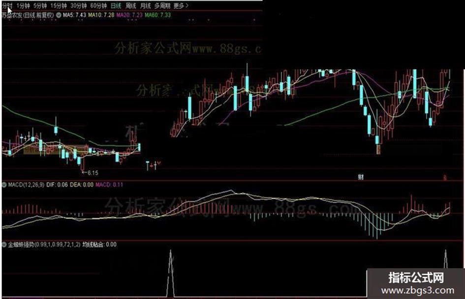 均线粘合:CROSS(P2/C<5/100 AND MA1>REF(MA1,1)