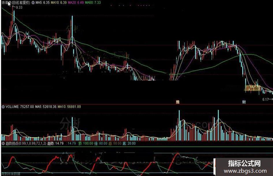 IF(趋势< REF(趋势,1),趋势,DRAWNULL),COLORLIBLUE,LINETHICK1;